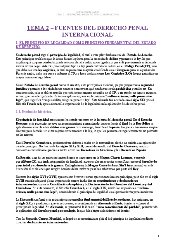 Bloque 1 (PENAL). Derecho penal internacional en general