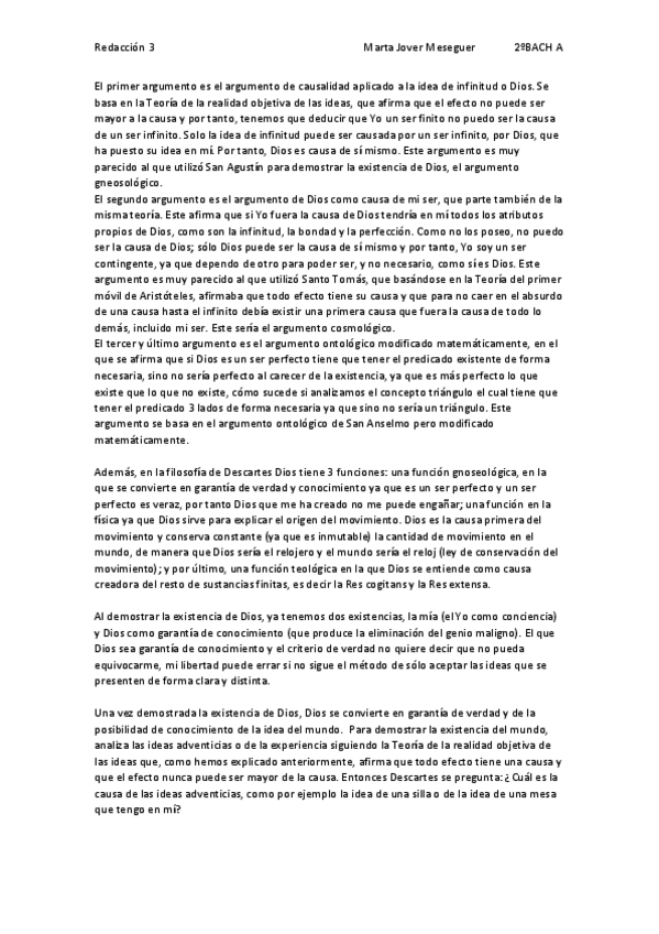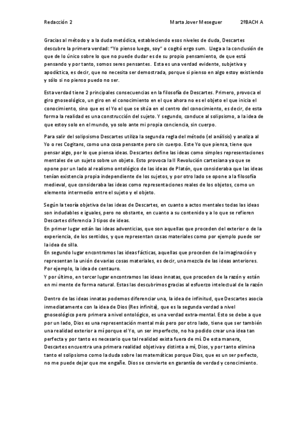 REDACCIÓN COMPLETA SOBRE ARGUMENTOS DEMOSTRATIVOS DESCARTES 2 BACH FILOSOFÍA
