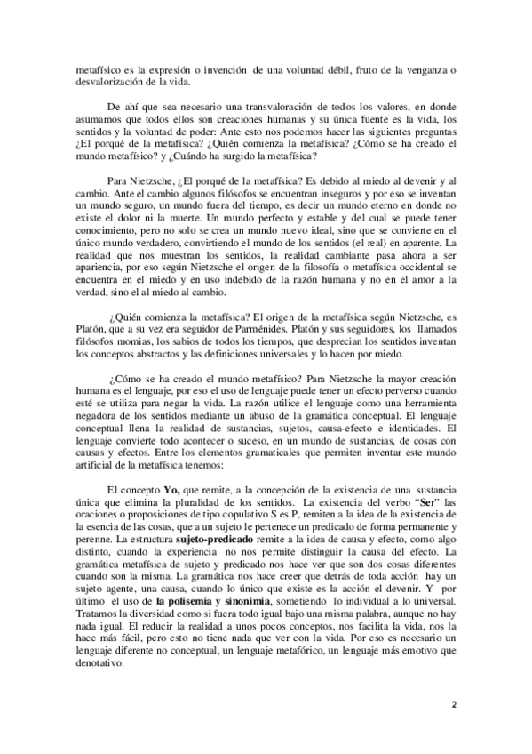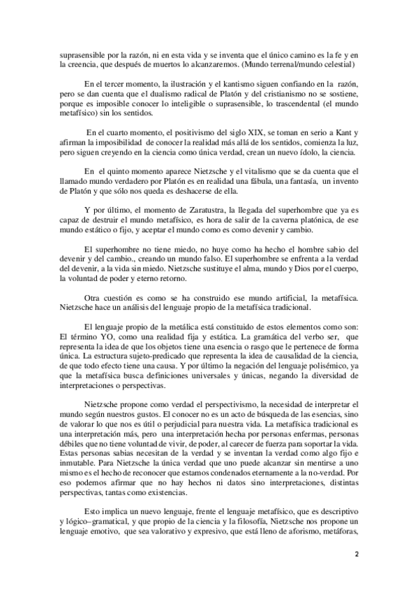 REDACCIÓN COMPLETA SOBRE "La crítica del mundo metafísico y la verdad como metáfora" DE NIETZSCHE HISTORIA DE LA FILOSOFÍA 2 BACH
