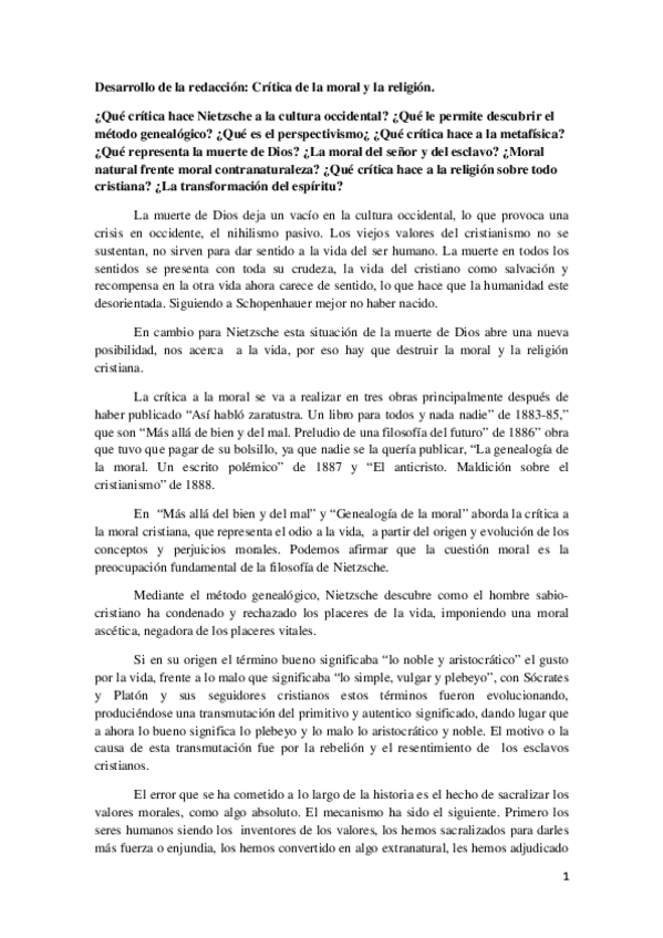 REDACCIÓN COMPLETA SOBRE LA CRÍTICA DE LA MORAL Y LA RELIGIÓN DE NIETZSCHE HISTORIA DE LA FILOSOFÍA 2 BACH