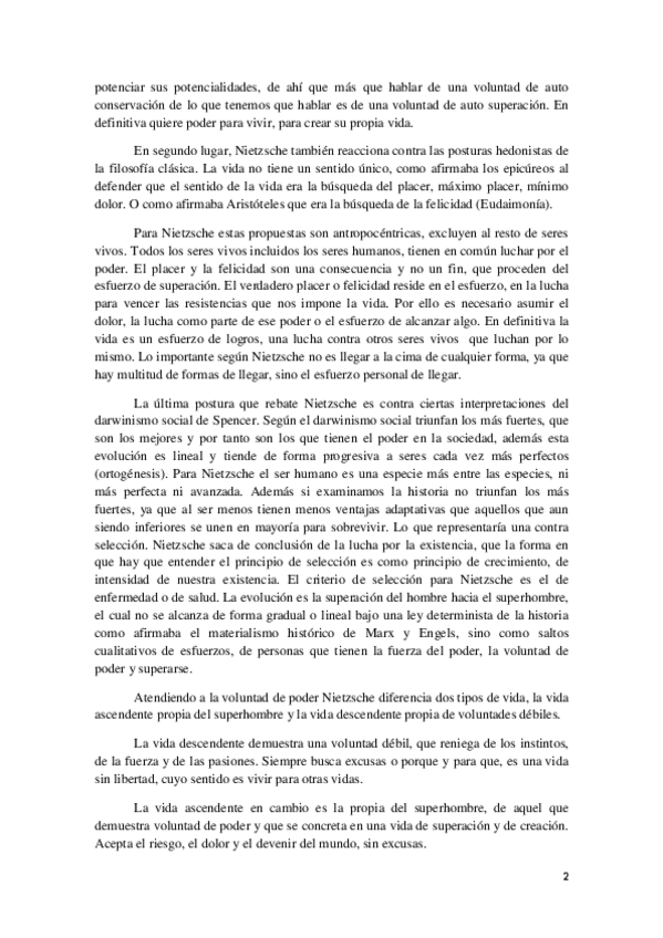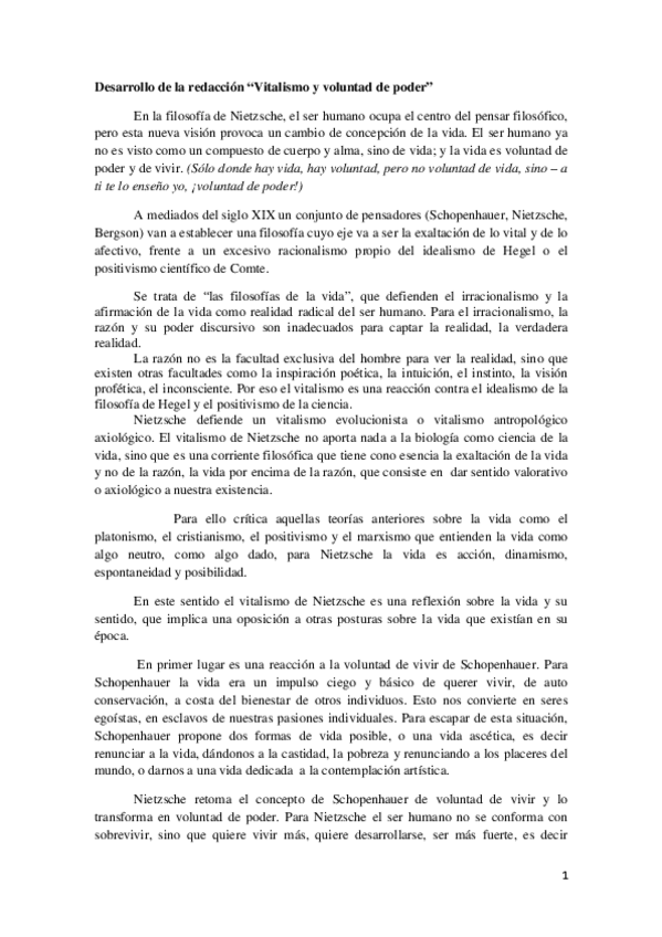REDACCIÓN COMPLETA SOBRE EL VITALISMO Y LA VOLUNTAD DE PODER DE NIETZSCHE HISTORIA DE LA FILOSOFÍA 2 BACH