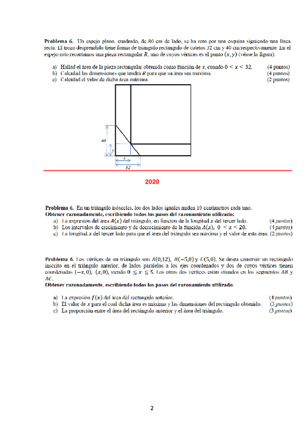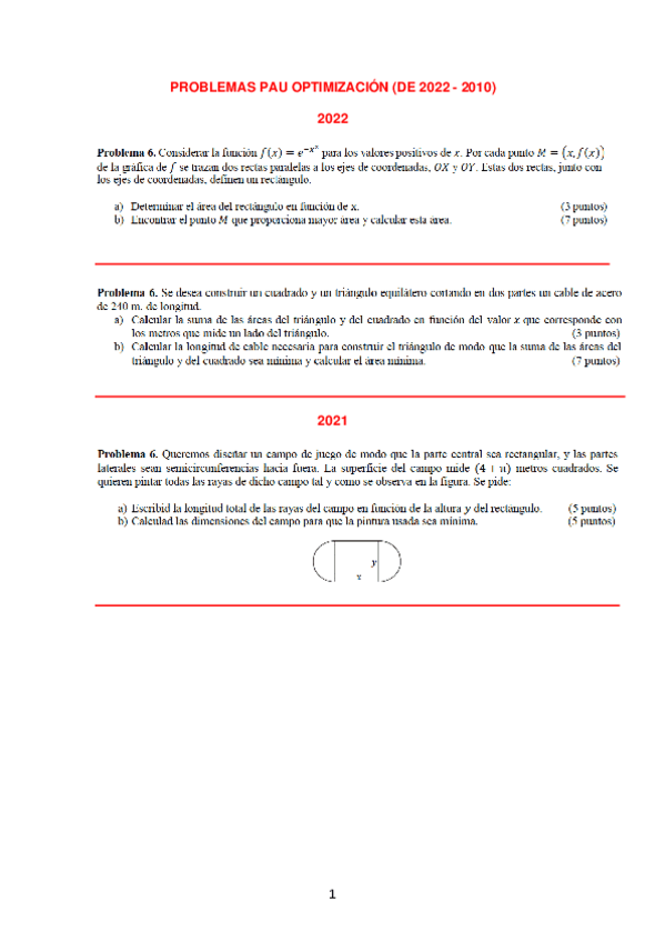 DOCUMENTO CON MÚLTIPLES PROBLEMAS DE OPTIMIZACIÓN PARA LA PAU DE MATEMÁTICAS II 2 BACH