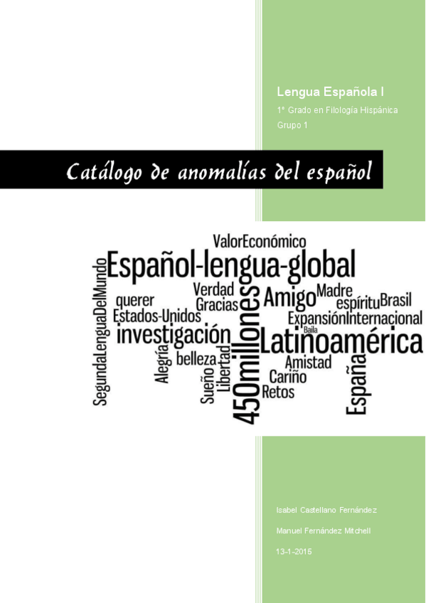 He publicado nuevos trabajos de 1º Lengua Española I: Catálogo de anomalías del español.pdf