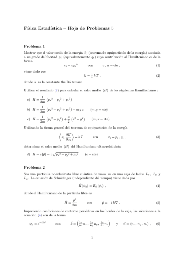 He publicado nuevos ejercicios de 3º Física Estadística: Hojas de ejercicios resueltas