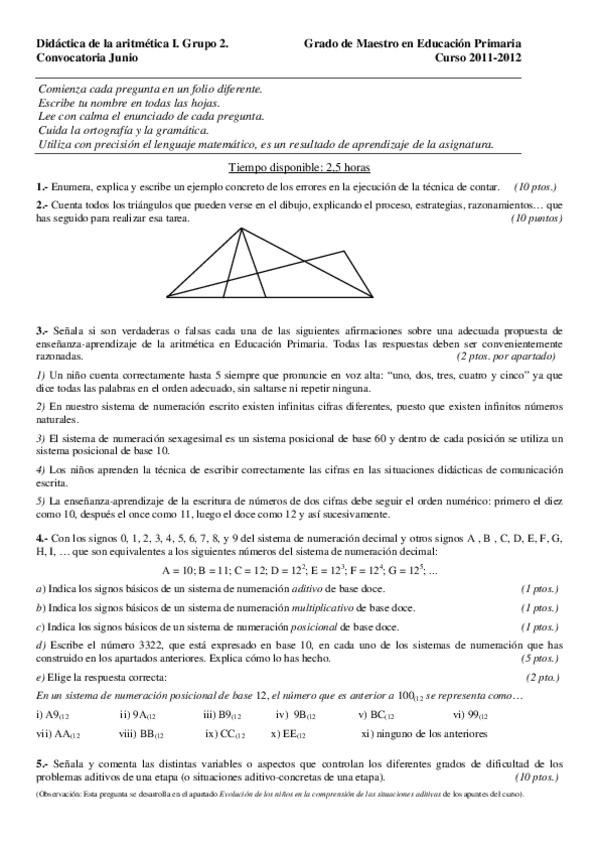 He publicado nuevos apuntes de 2º Didáctica de la aritmética I: Examen 2012-2013