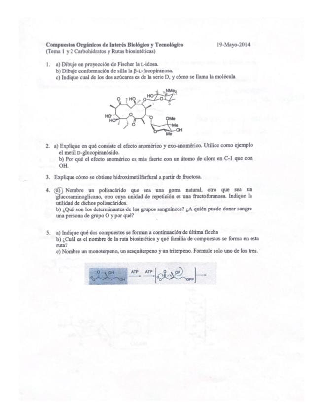 He publicado nuevos examenes de 4º Compuestos Orgánicos de Interés Biológico y Tecnológico: Exámenes resueltos