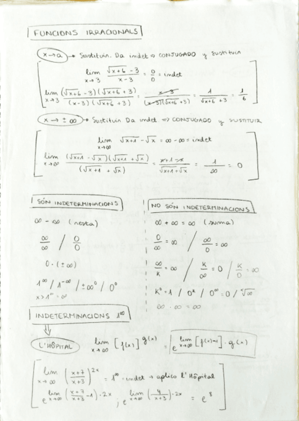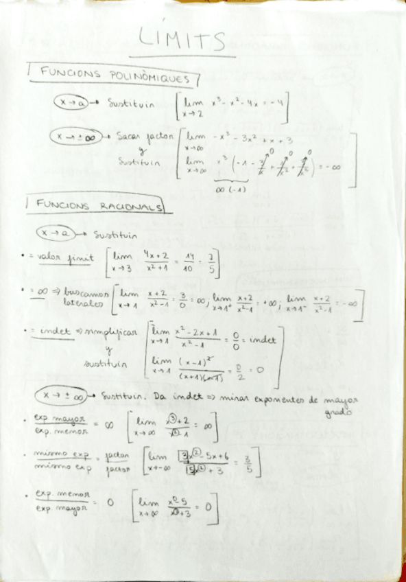 Com calcular el límit de funcions polinòmiques, racionals, irracionals. Què és una indeterminació i què no. Resoldre indeterminacion. Estudi de la continuitat d'una funció. Assímptotes.
