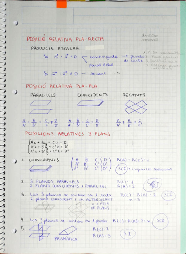 Com trobar lla posició relativa entra pla-recta, pla-pla i 3 plans