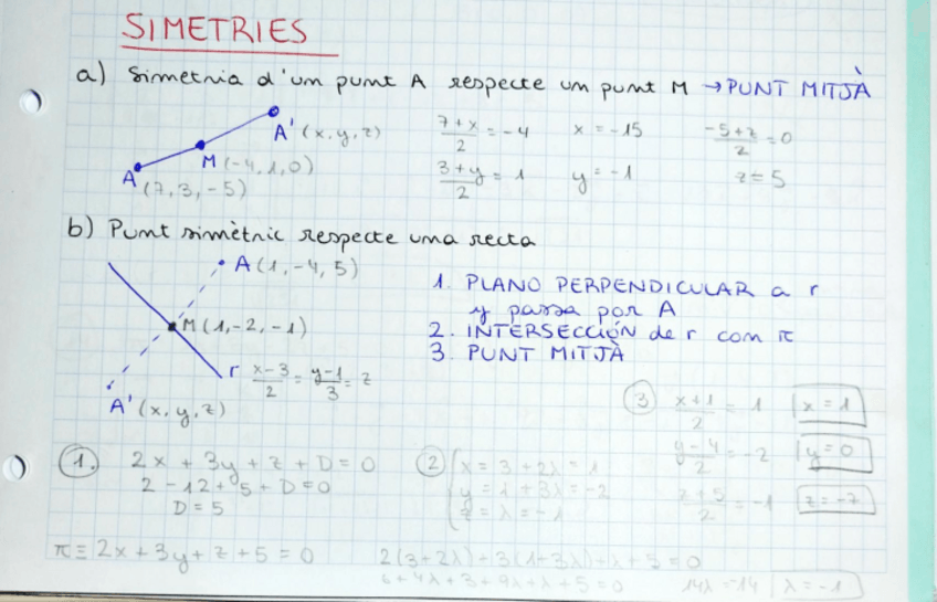 Com trobar el punt simètric respecte d'un altre punt, d'una recta i d'un pla