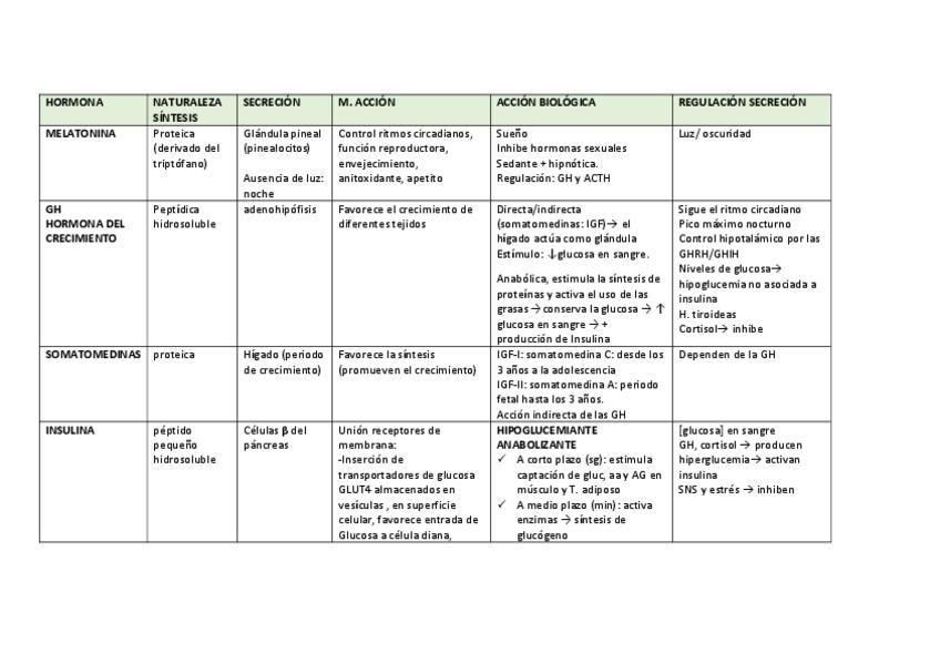 incluye tabla de hormonas