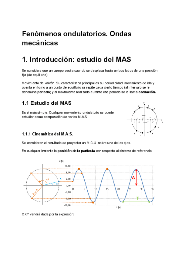 Apuntes de los Fenómenos ondulatorios (Movimiento armónico simple y ondas)