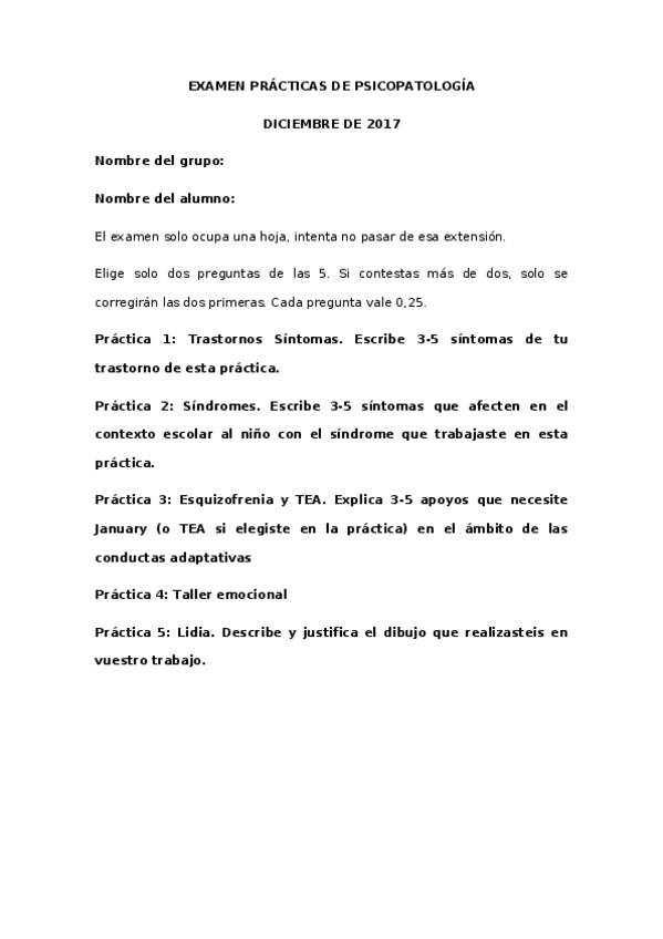 Examen prácticas psicopatología
