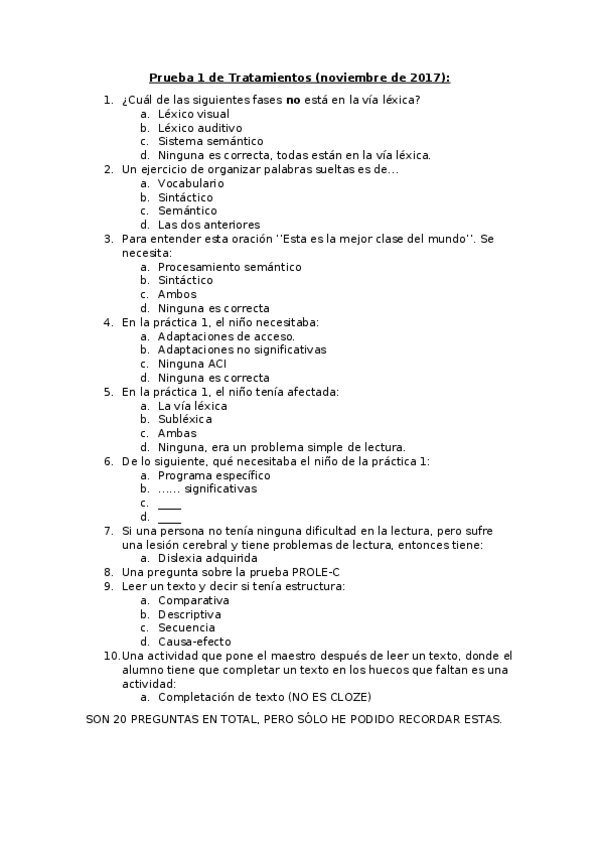 He publicado nuevos apuntes de 4º Tratamientos Psicoeducativos de Los Trastornos de la Lengua Escrita y El Cálculo: Prueba 1 Tratamientos.docx