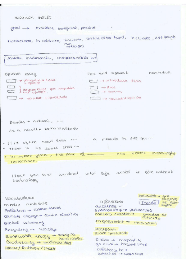 Errores comunes de writings y sus correcciones + estructura de opinion essay y for and against