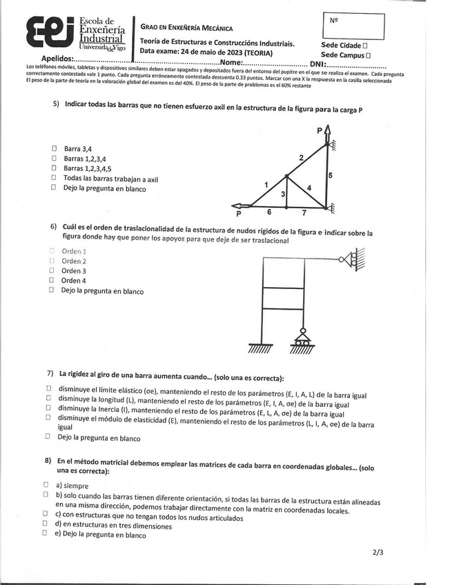 He publicado nuevos examenes de 3º Teoría de Estructuras y Construcciones Industriales: Examen-TECI-Maio-2023.pdf