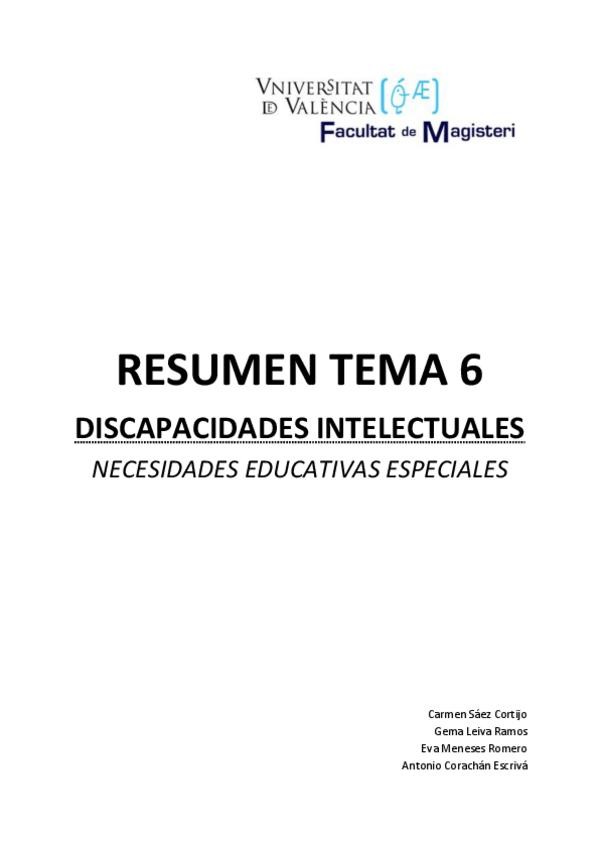 Resumen del Temario de las Distintas Necesidades Educativas Que Existen