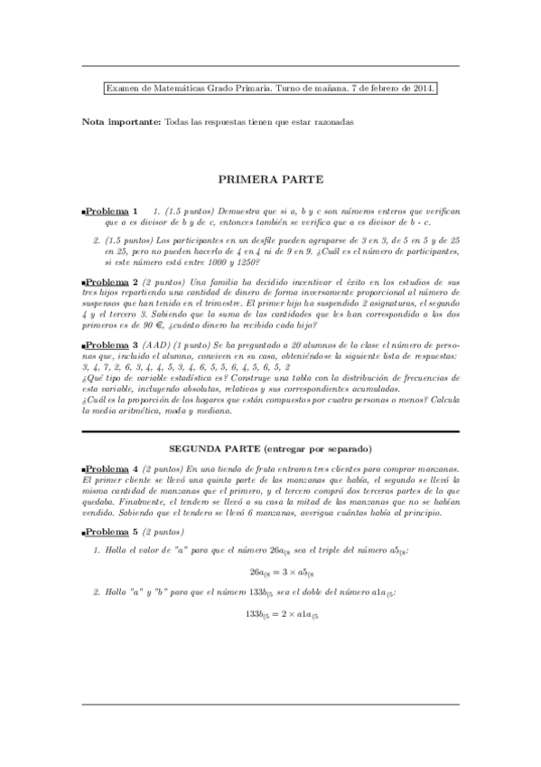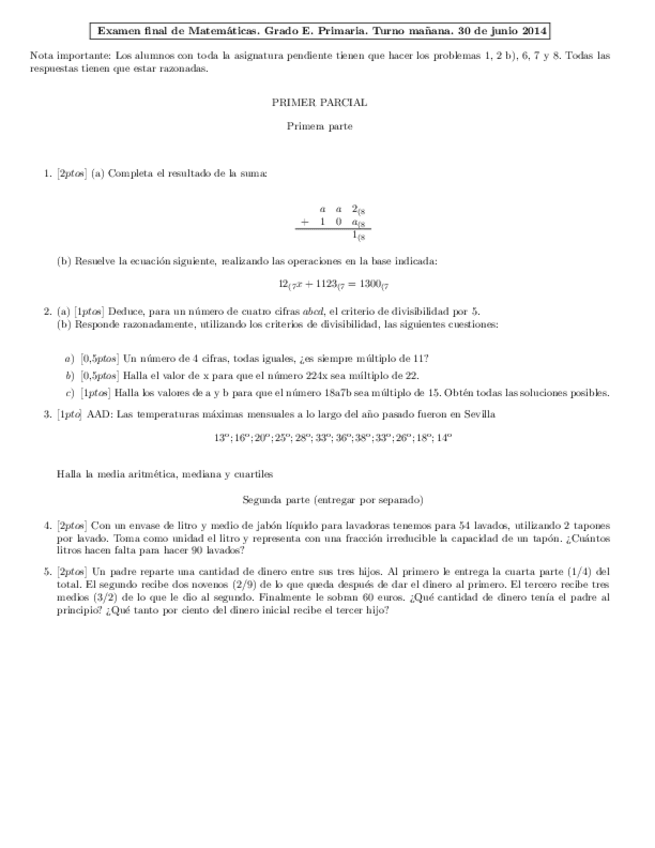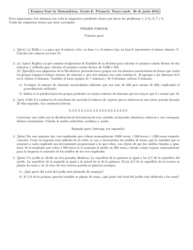 He publicado nuevos examenes de 1º Matemáticas Específicas Para Maestros: EXAMENES DE CURSOS ANTERIORES