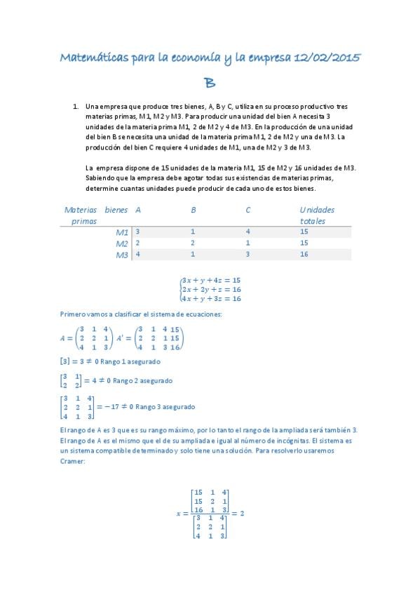 He publicado nuevos apuntes de 1º Matemáticas para la Economía y la Empresa: Exámenes