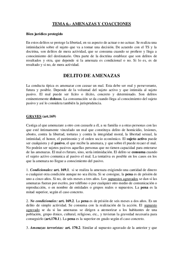 He publicado nuevos apuntes de 2º Derecho Penal II: TEMA-6-AMENAZAS-Y-COACCIONES.docx