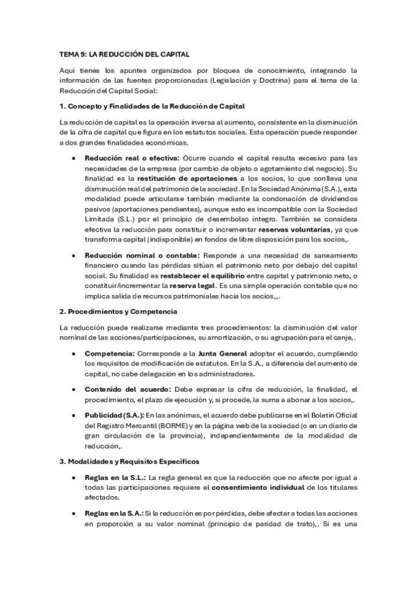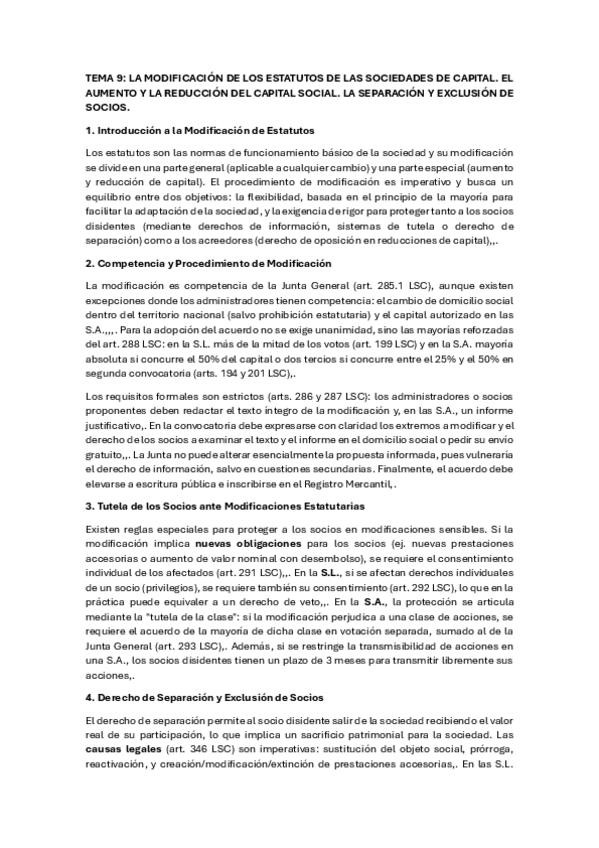 Resumen apuntes tema 9LA MODIFICACIÓN DE LOS ESTATUTOS DE LAS SOCIEDADES DE CAPITAL