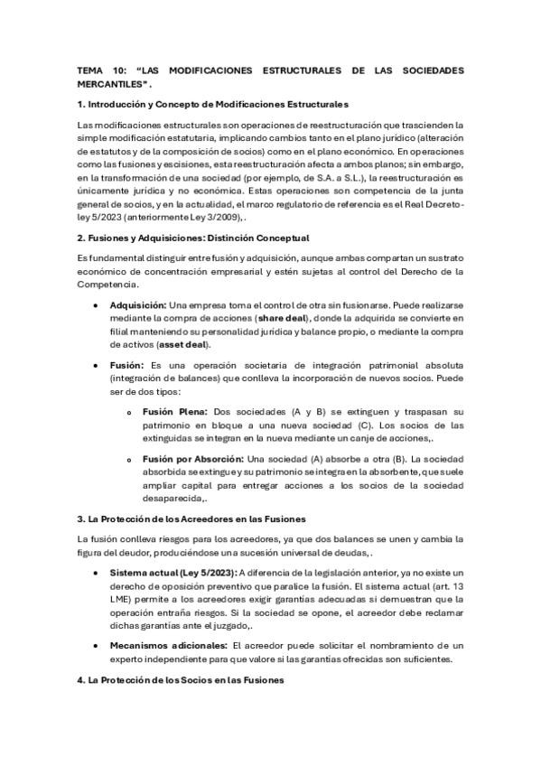 Resumen TEMA 10: “LAS MODIFICACIONES ESTRUCTURALES DE LAS SOCIEDADES MERCANTILES” .