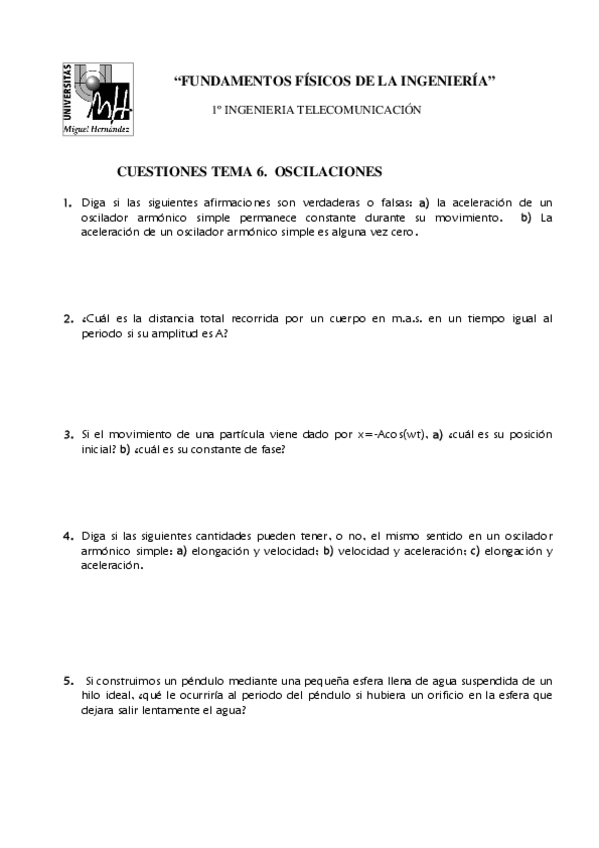 He publicado nuevos ejercicios de 1º FUNDAMENTOS FISICOS DE INGENIERIA I: TEMA 6. OSCILACIONES.pdf