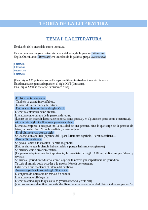 He publicado nuevos apuntes de 1º Teoria de la Literatura: Teoría de la literatura COMPLETA