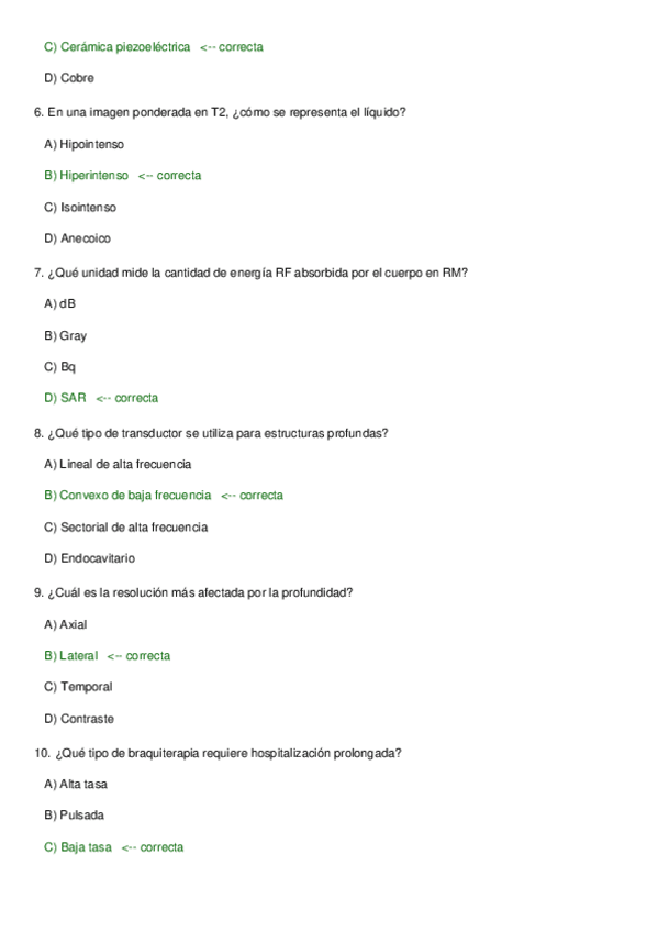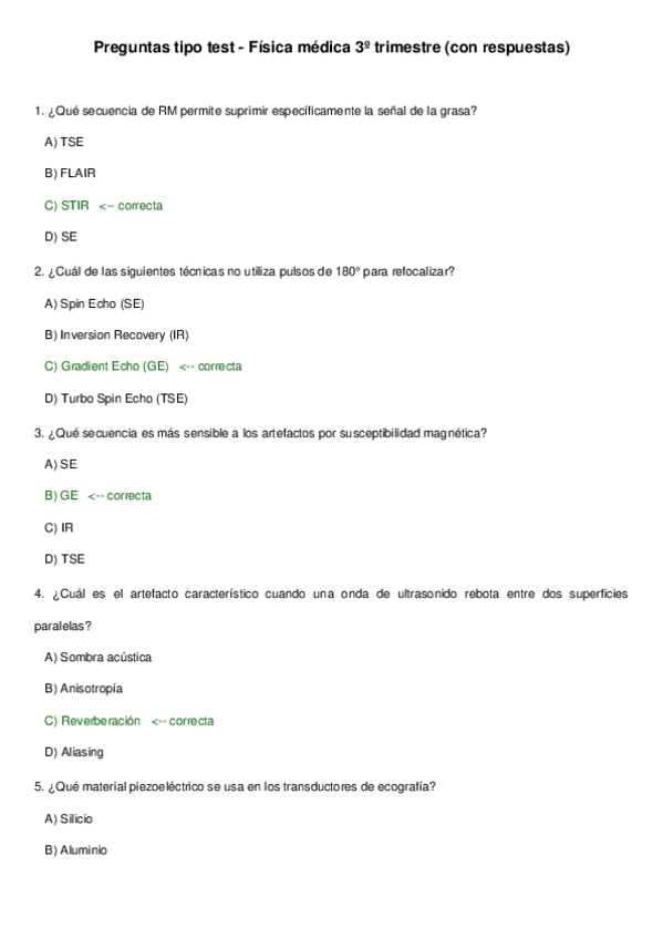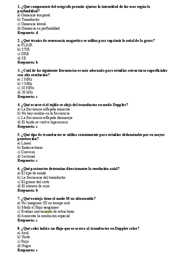 Preguntas test tema de ecografía de repaso de fundamentos físicos