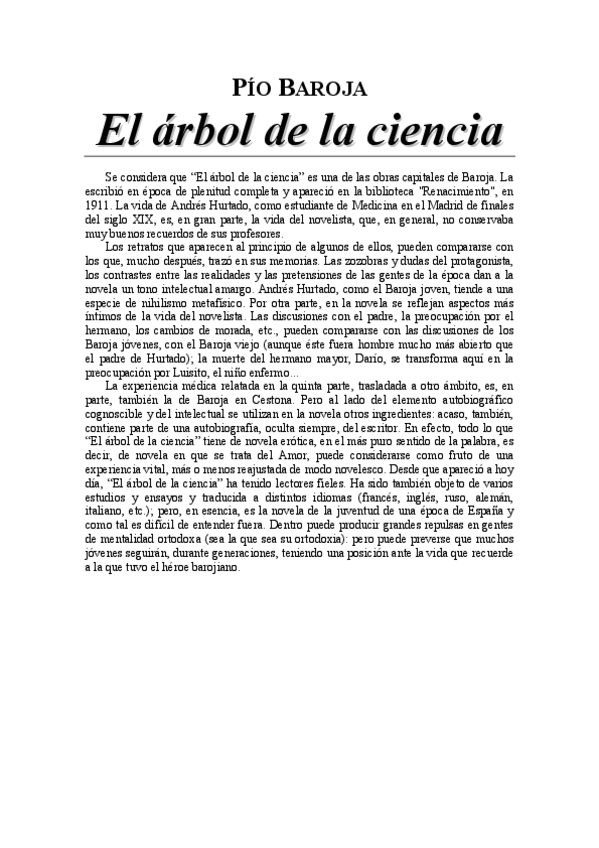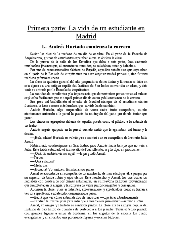 Resumen de la primera parte del libro “Árbol de la ciencia”, Pío Baroja.