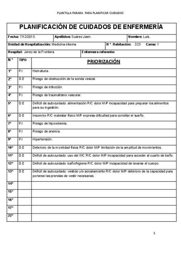 He publicado nuevos ejercicios de 1º Bases Teóricas y Metodológicas de los Cuidados de Enfermería: PLANES DE CUIDADOS.