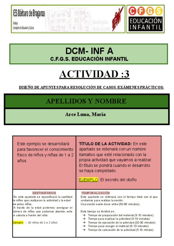 Apuntes para la planificación de actividades con ejemplos de 3 actividades