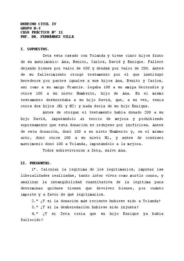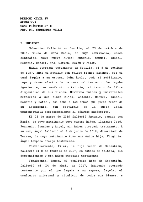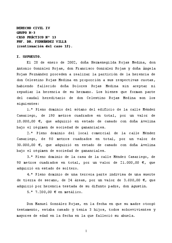 He publicado nuevos practicas de 4º Derecho Civil IV: Caso 8 Fernandez Villa