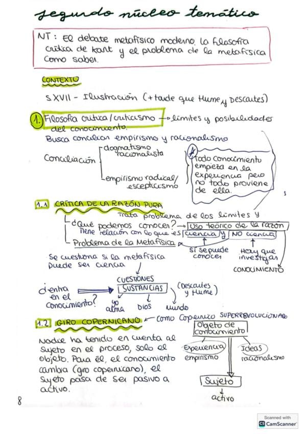 Apuntes esquematizados sobre la Filosofía Moderna de Kant con el Núcleo temático del criticismo y el problema de la metafísica de la PAU de la Comunidad Valenciana