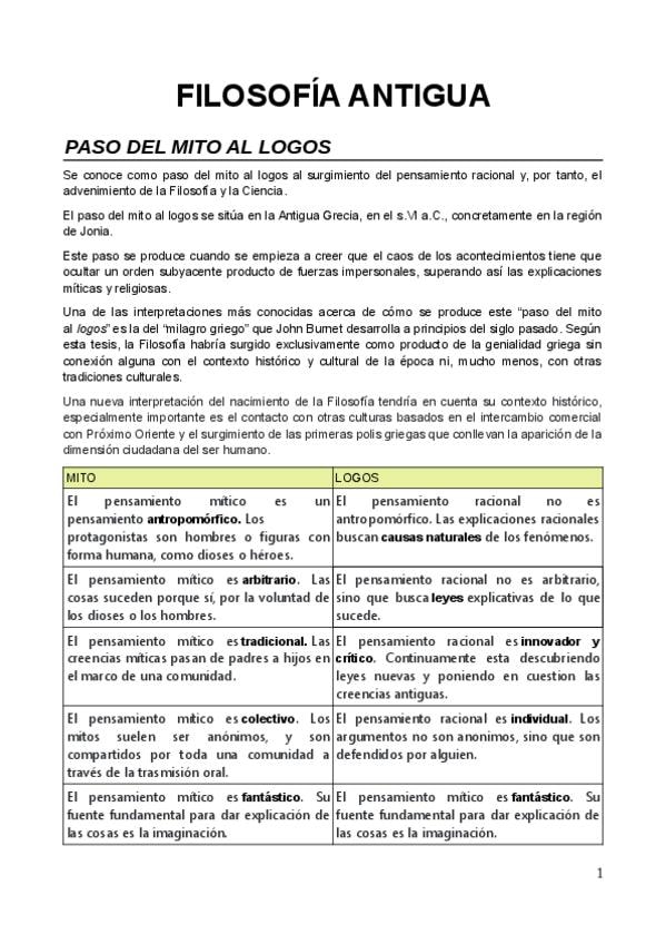 Apuntes desarrollados sobre la Filosofía Antigua con Presocráticos, Sócrates, Platón y Aristóteles de la PAU de la Comunidad Valenciana