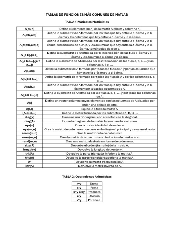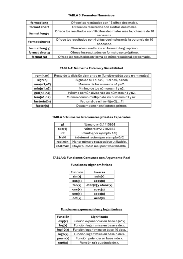 He publicado nuevos apuntes de 2º Ampliación de Matemáticas: TABLA-FUNCIONES-MATLAB.pdf