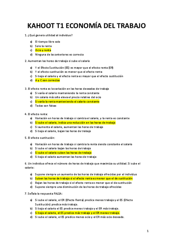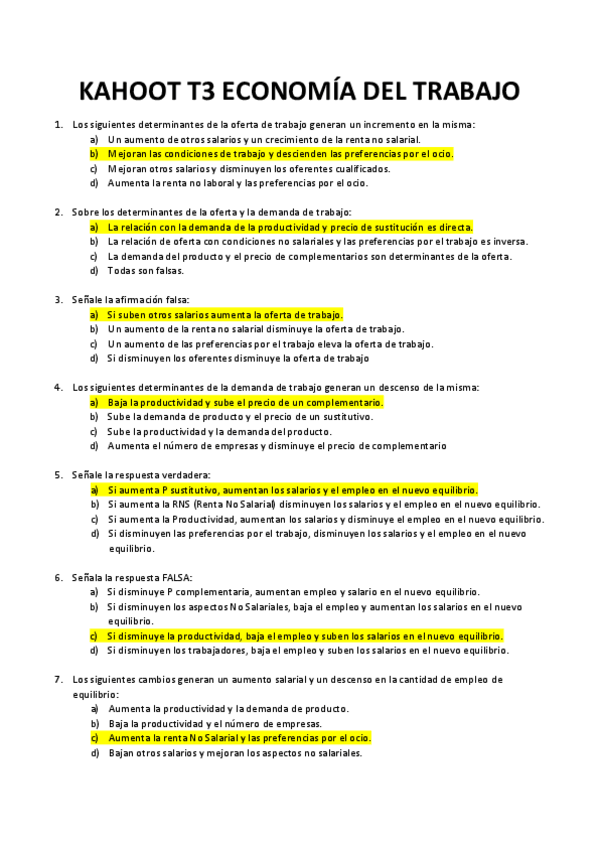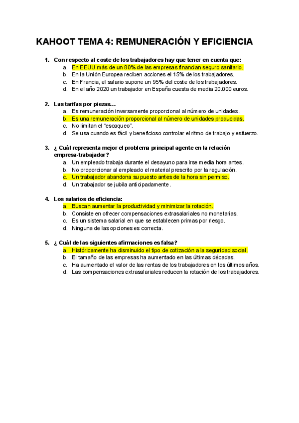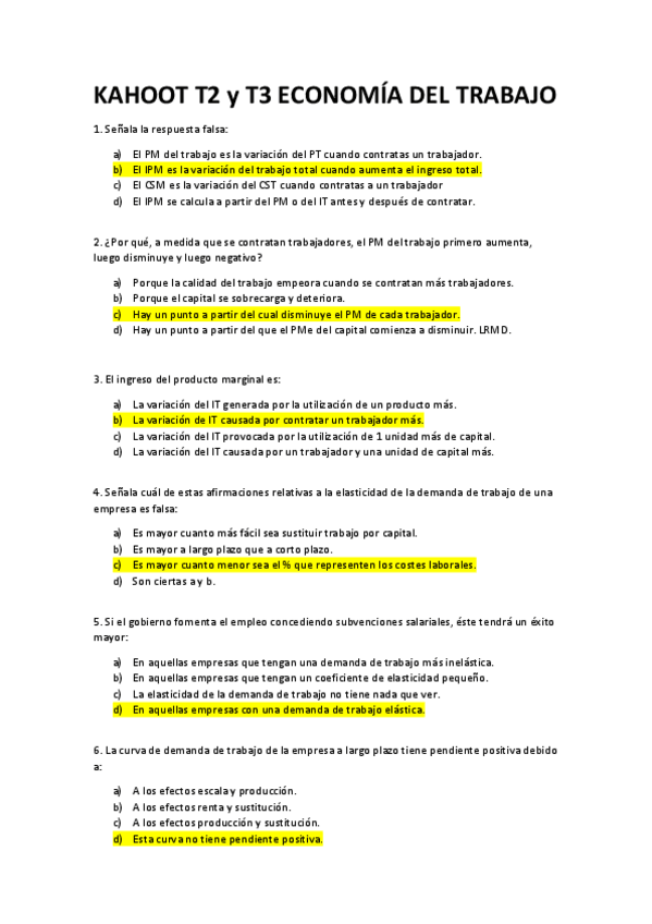 He publicado nuevos test de 3º Economía del Trabajo: Kahoot temario completo