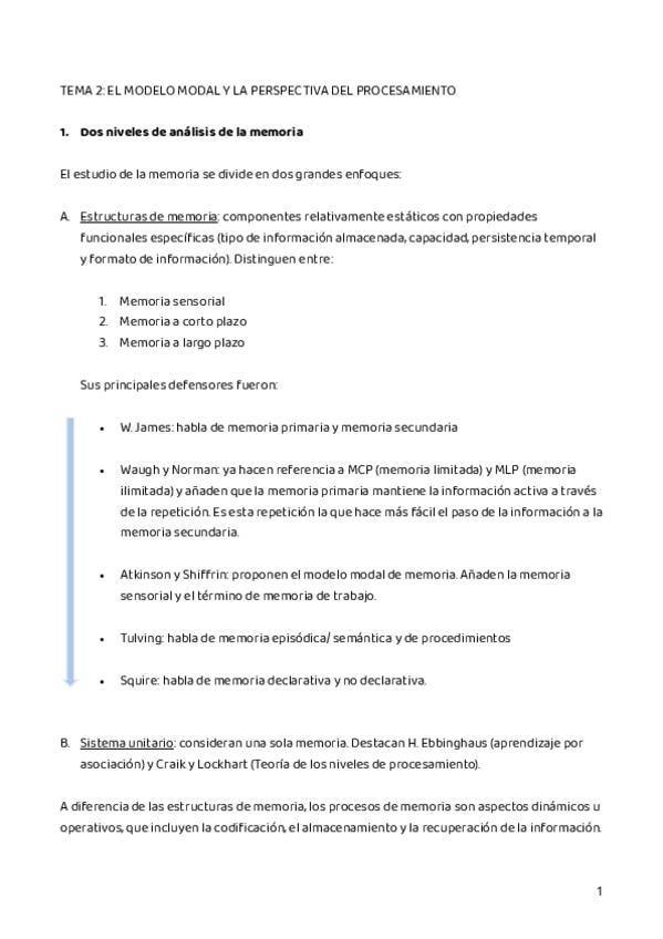 He publicado nuevos apuntes de 2º Psicología de la Memoria: TEMARIO
