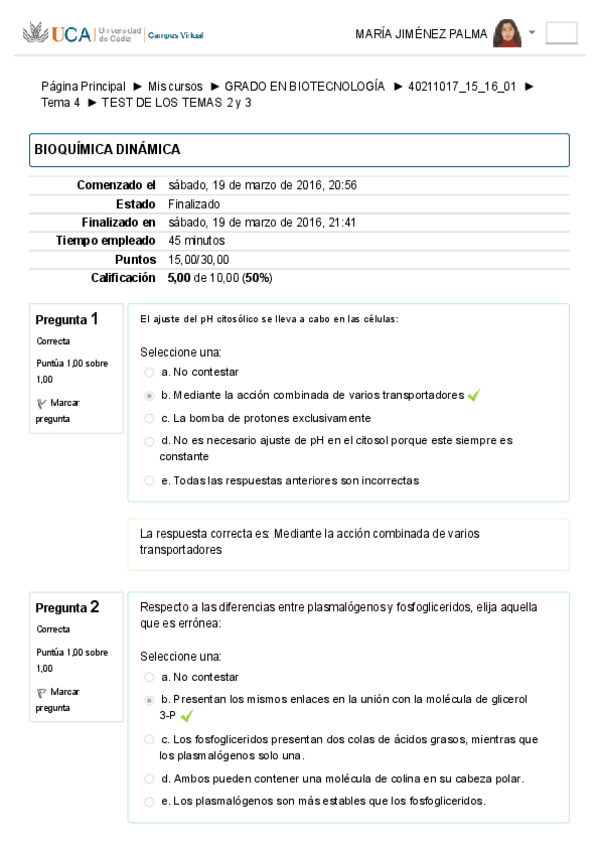 He publicado nuevos examenes de 2º Bioquímica Dinámica: Exámenes Tipo Test