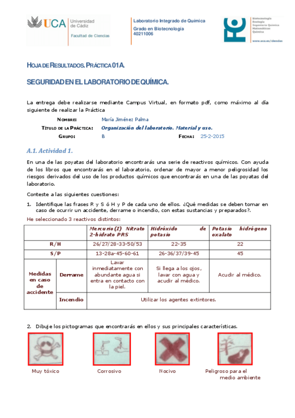 He publicado nuevos trabajos de 1º Laboratorio Integrado de Química: Hojas de Resultados