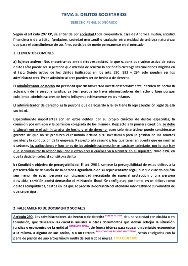 He publicado nuevos apuntes de 3º Derecho Penal Económico: TEMA 5. DELITOS SOCIETARIOS.pdf