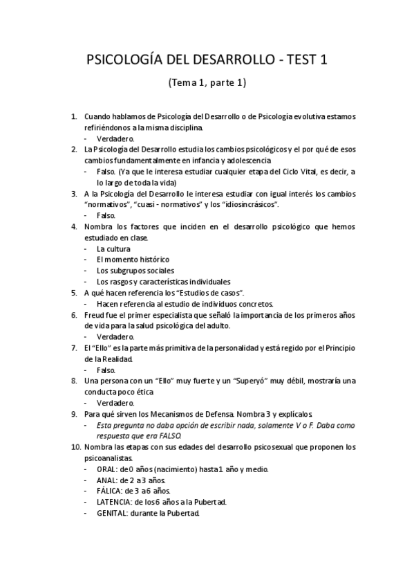 He publicado nuevos test de 1º Psicología del Desarrollo: Test completos corregidos