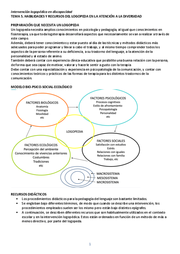 He publicado nuevos apuntes de 3º Intervención Logopédica en Discapacidad: Discapacidad