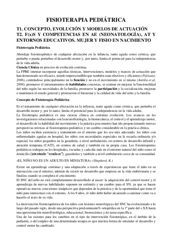 He publicado nuevos apuntes de 4º Fisioterapia Pediátrica: Fisioterapia Pediátrica