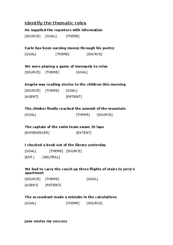 He publicado nuevos ejercicios de 4º Apuntes Variados: Identify the thematic roles.docx
