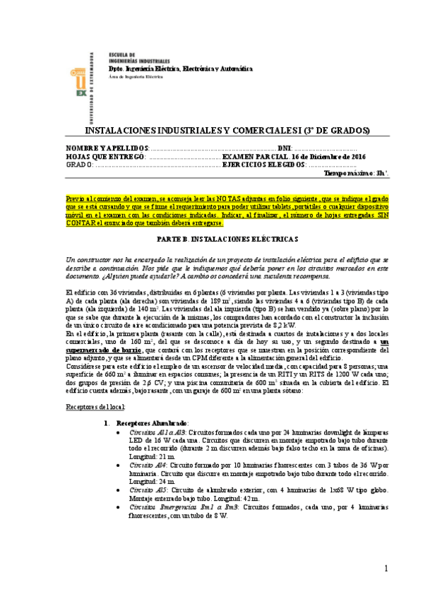 He publicado nuevos examenes de 3º Instalaciones Industriales Comerciales I: 2016parcial.pdf