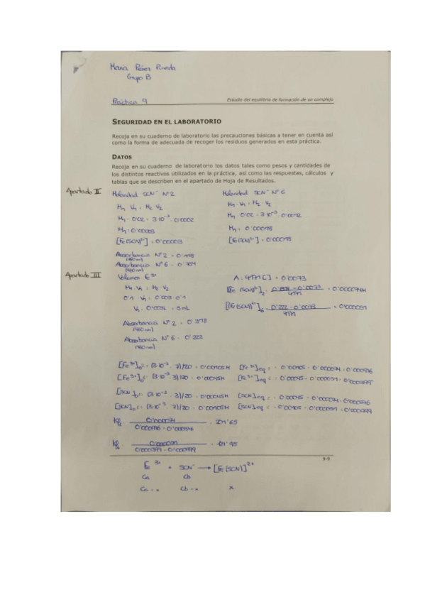 He publicado nuevos practicas de 2º Laboratorio Integrado de Química: HOJA DE RESULTADO PRÁCTICA 9