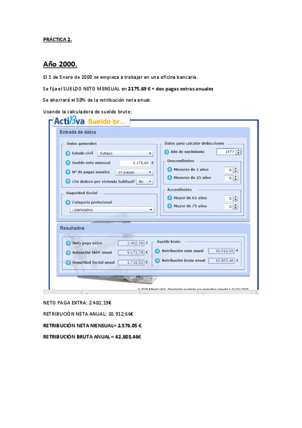 Esta es actividad más dura que se hace en la parte práctica de Economía Bancaria. Usar sólo como referencia, cada persona debe partir de un sueldo inicial distinto. La práctica está perfecta.