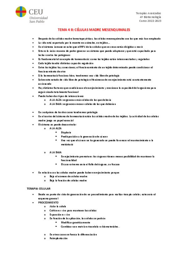 He publicado nuevos apuntes de 4º TERAPIAS AVANZADAS: Terapias Avanzadas