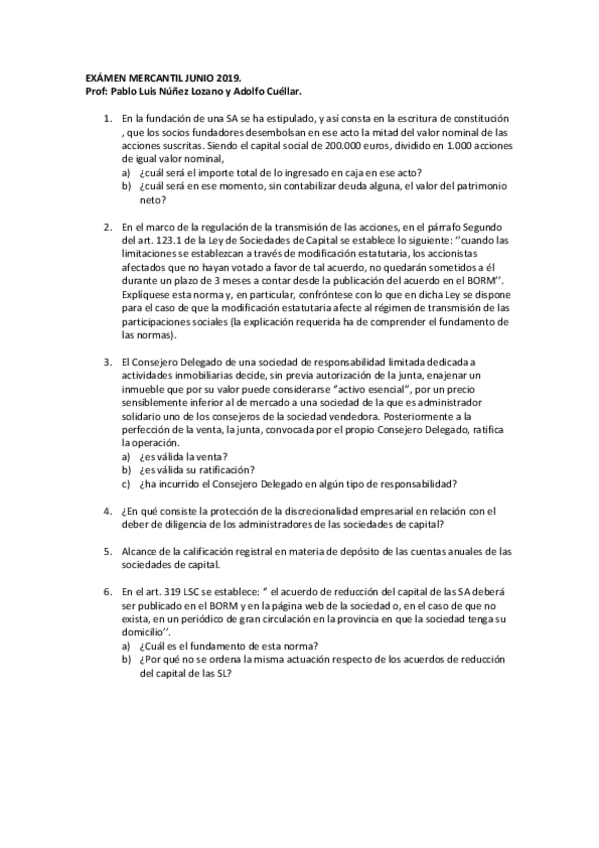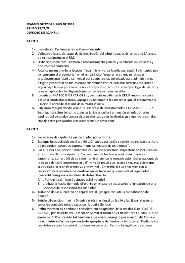EXAMEN FINAL MERCANTIL I, 2019