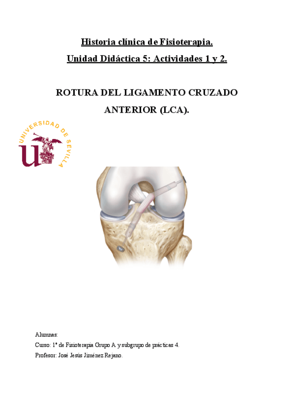 Historia clínica Ligamento cruzado anterior (LCA)